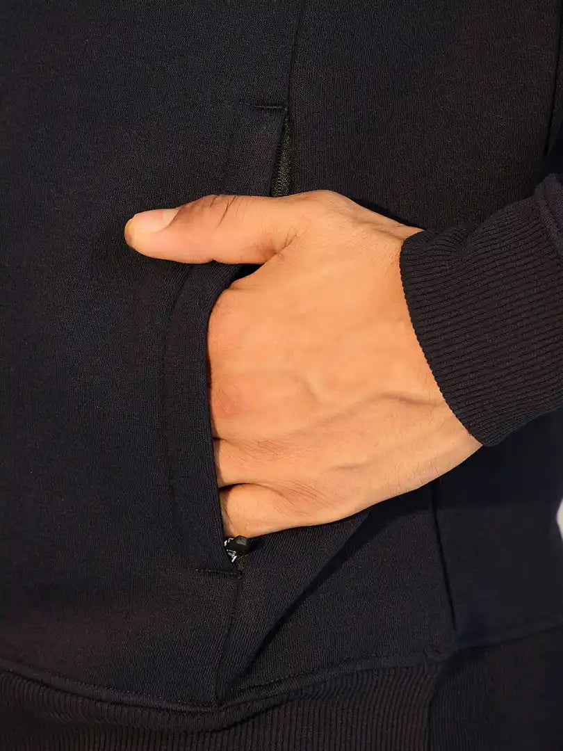 Step into comfort and functionality with this Navy hoodie for men. Designed using premium Fleece, it highlights contrast inner hood panel for a refined touch.