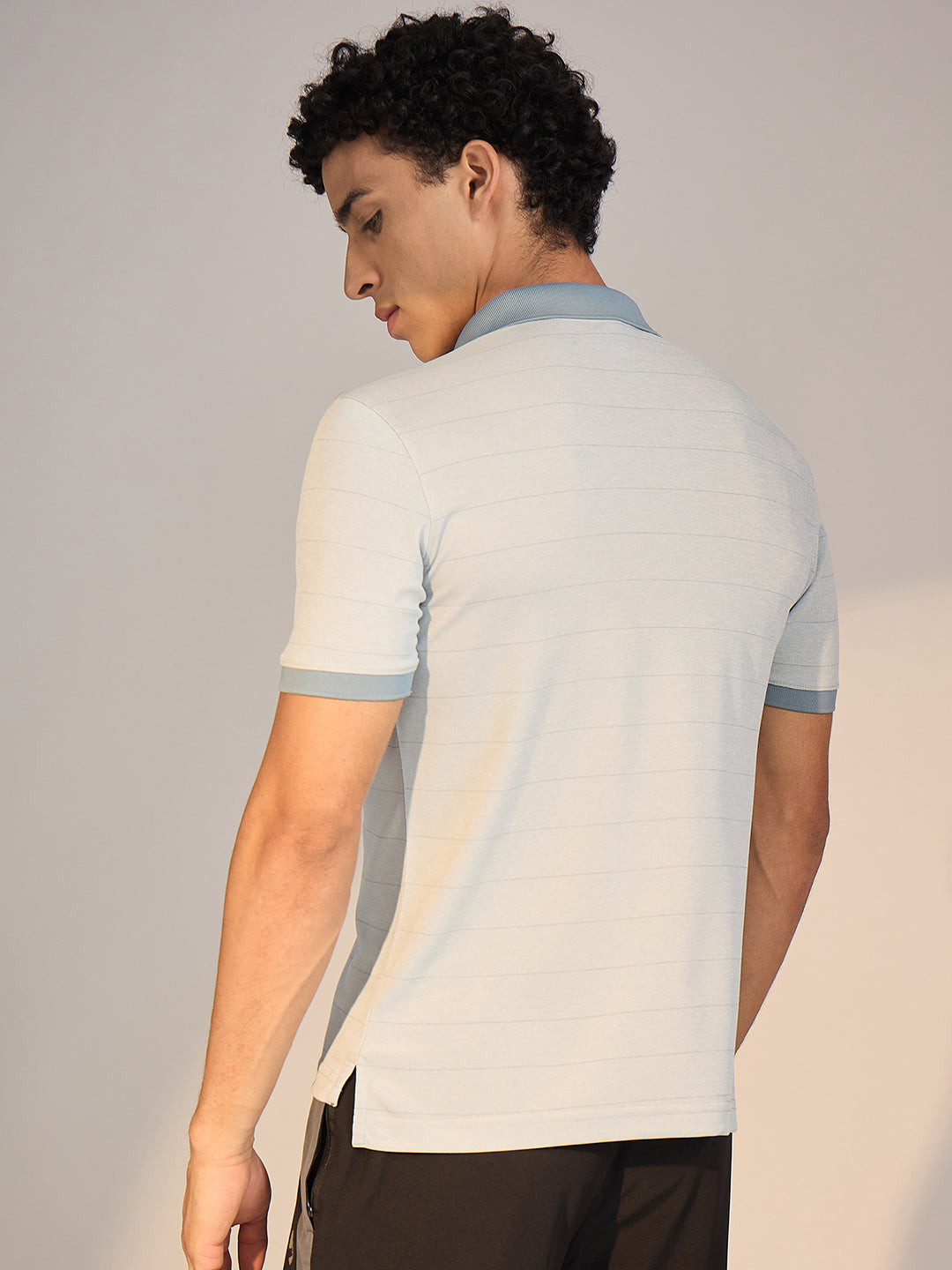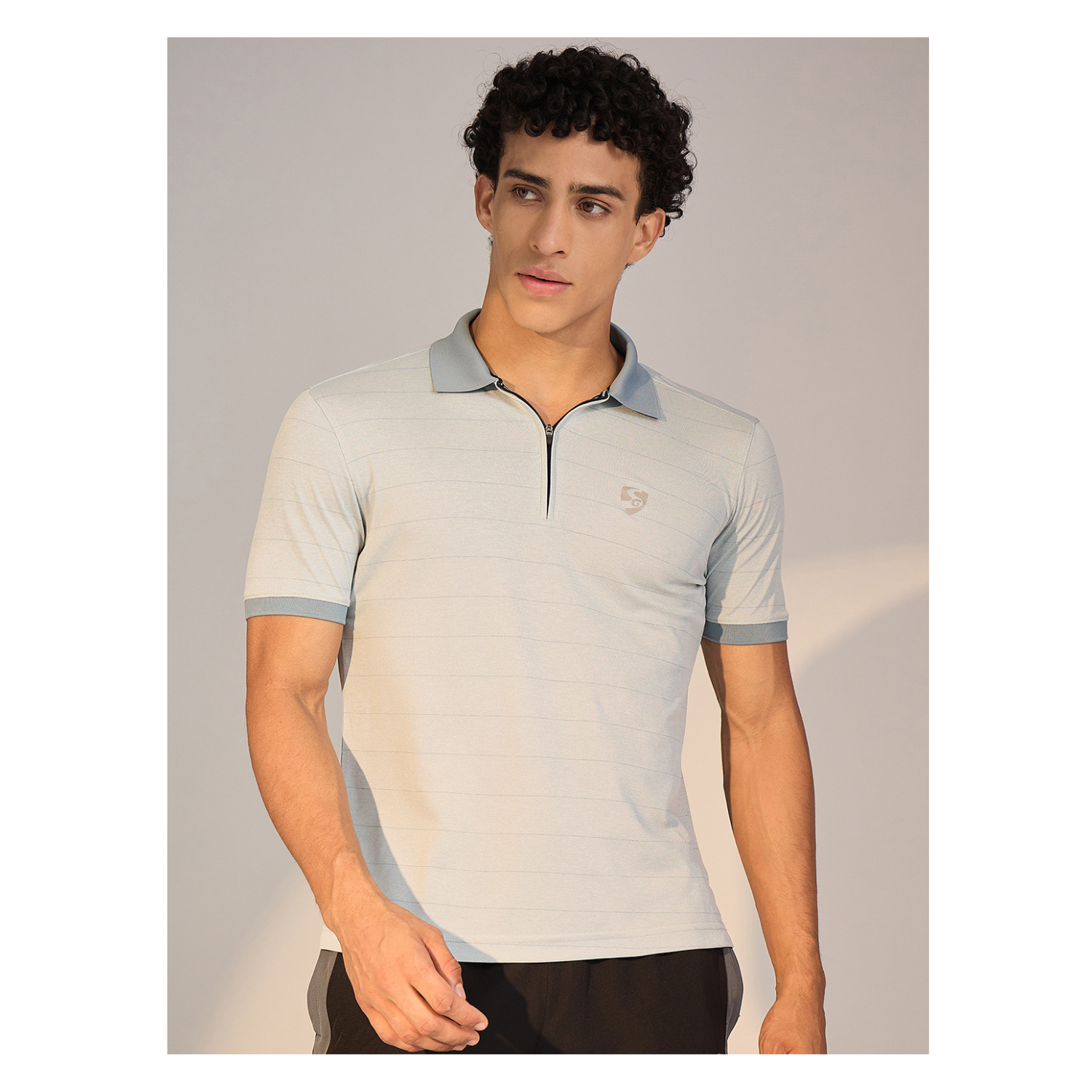 Redefine your play sessions with this Polo in Blue fog. Crafted in soft Pique Lycra Feeder Stripe, it showcases regular fit, zipper style polo, very comfortable to wear, solid color design that enhances both comfort and style.