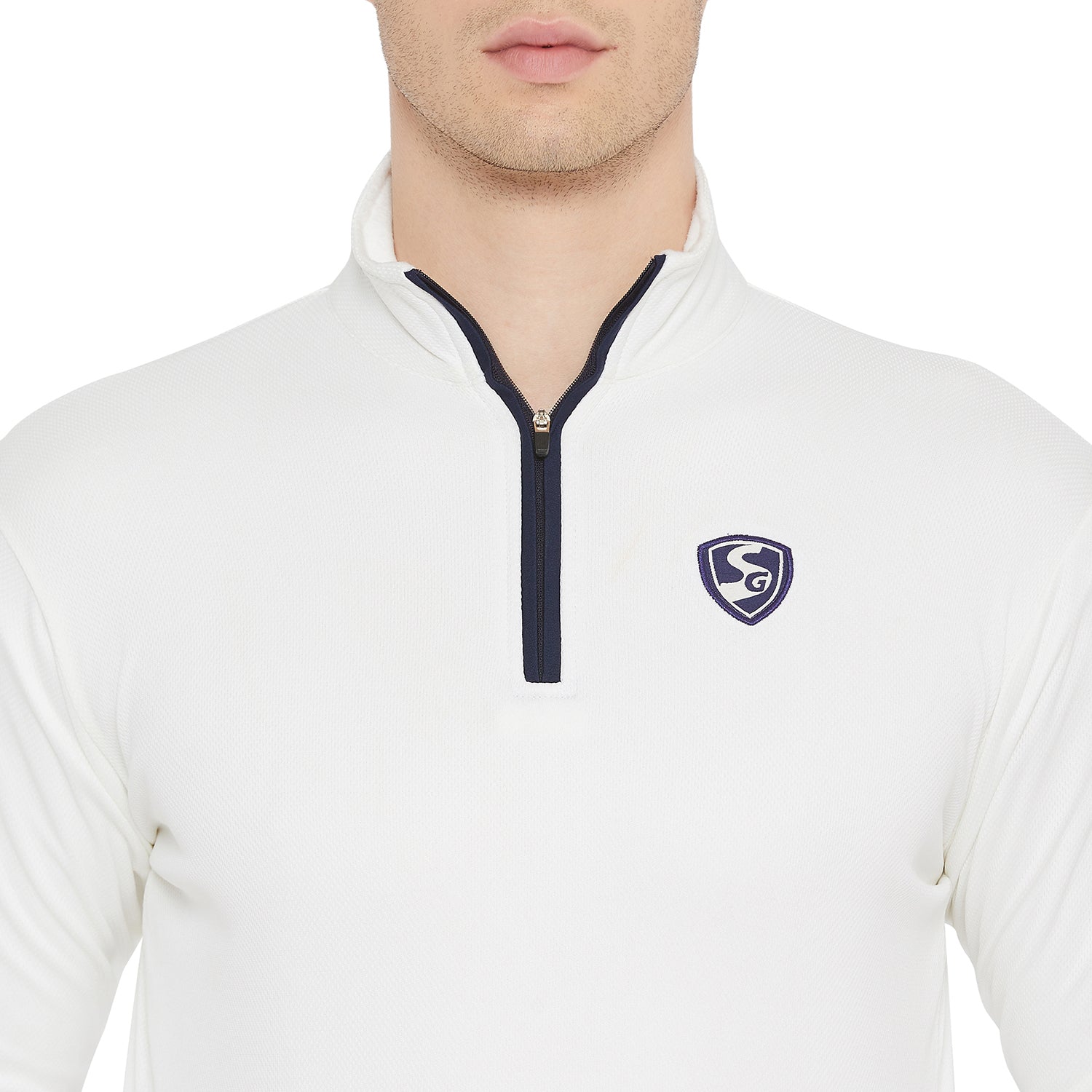 SG Icon Full Sleeves Cricket Sweater Off-white color, premium quality knitted lightweight material