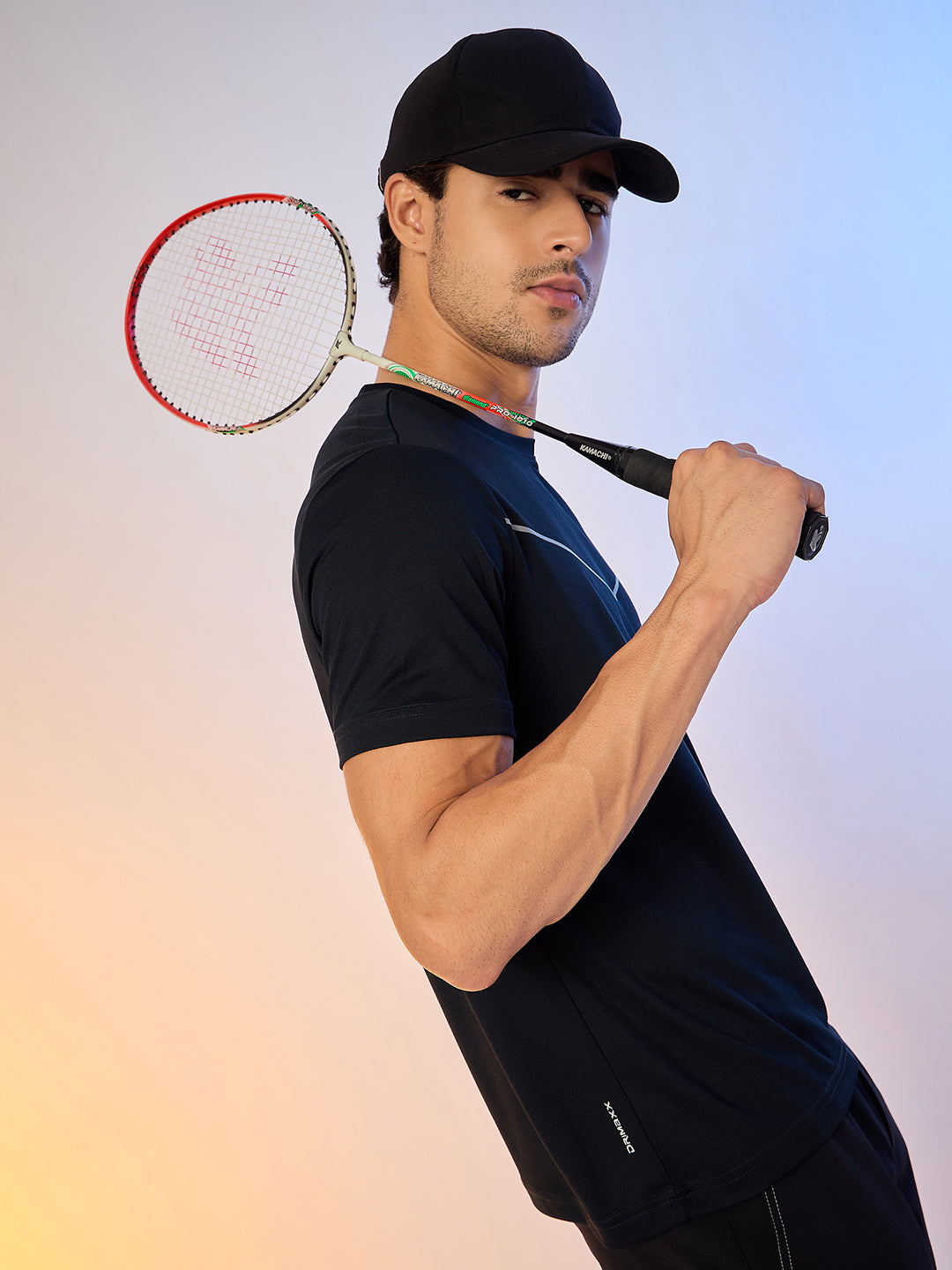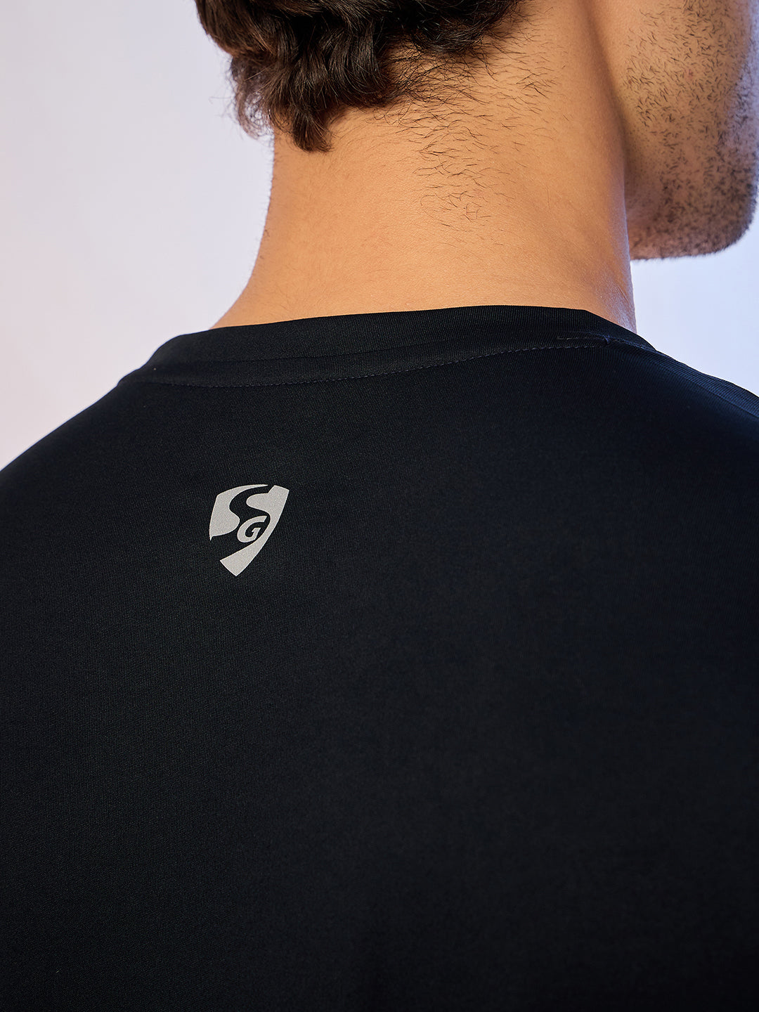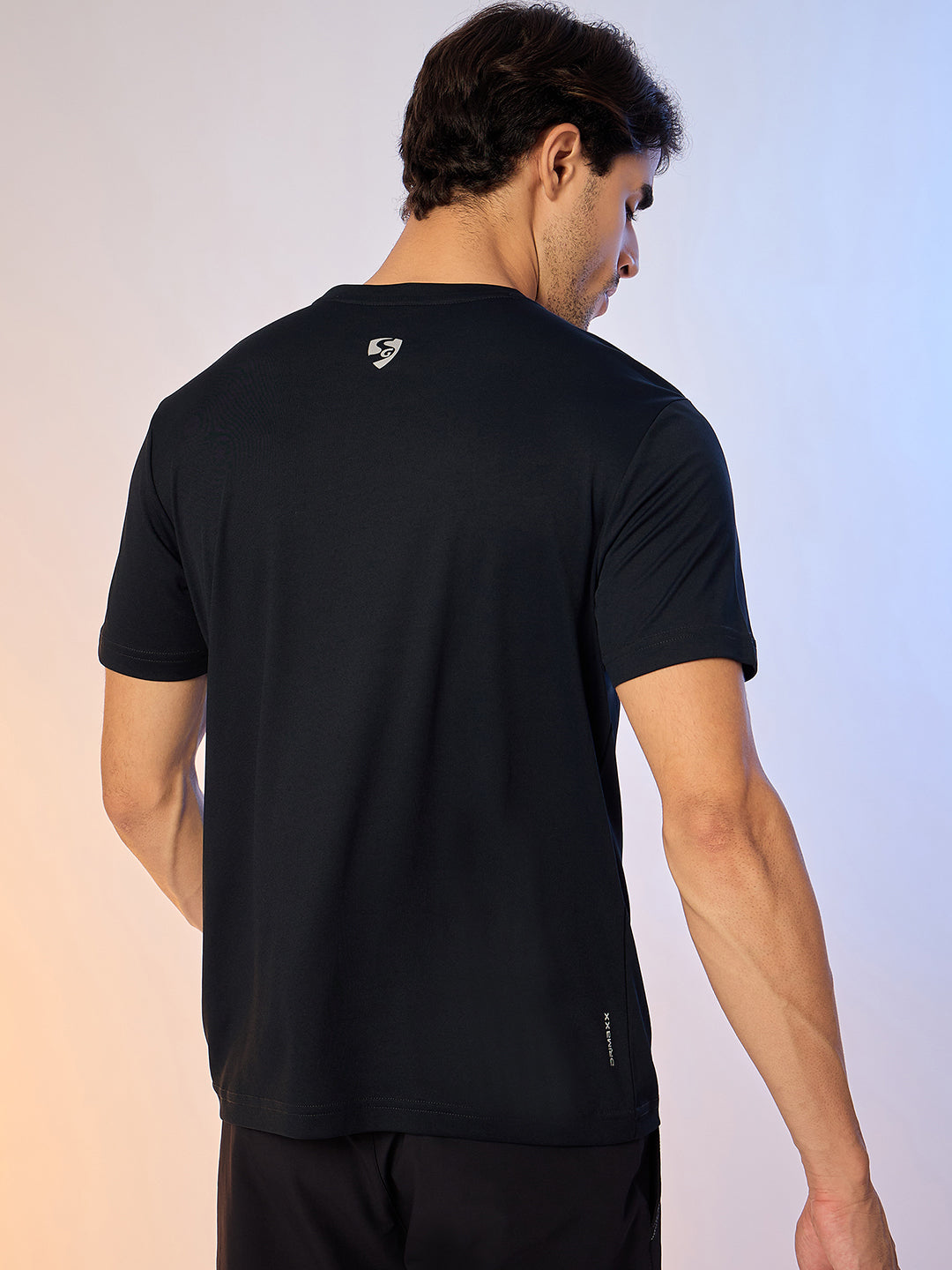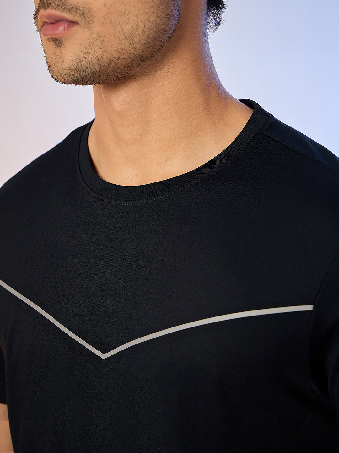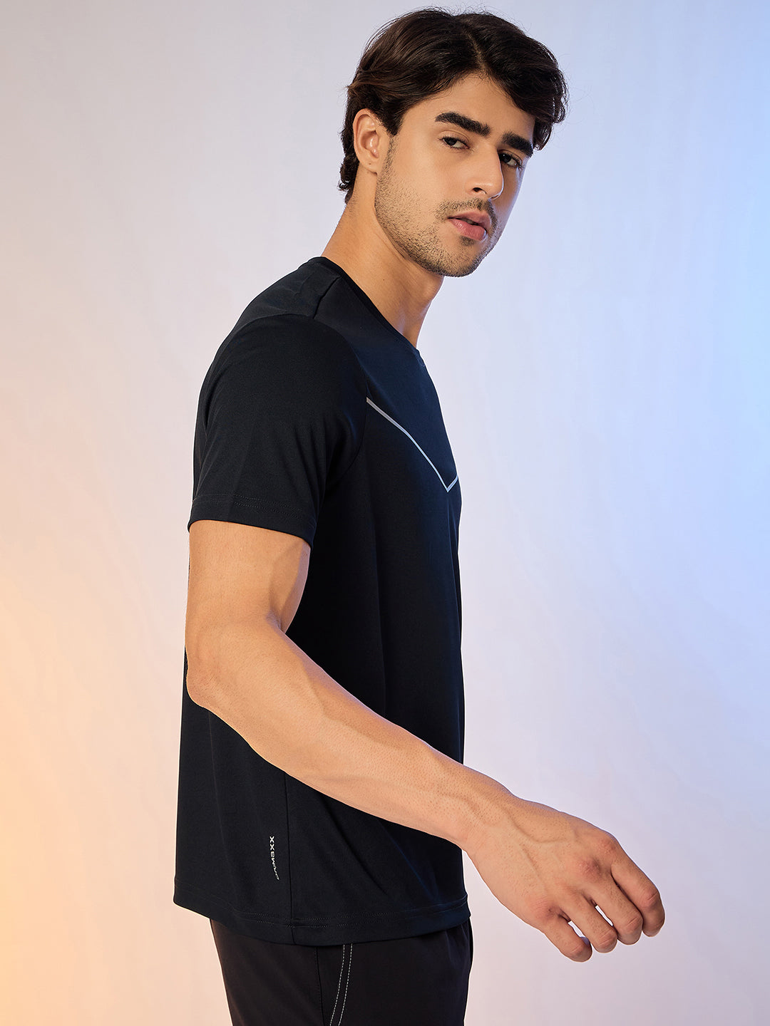 For the modern sportsmen, this Navy T-shirt in breathable Poly Interlock combines fashion and function with its regular fit, reflective smooth v shape design in front.