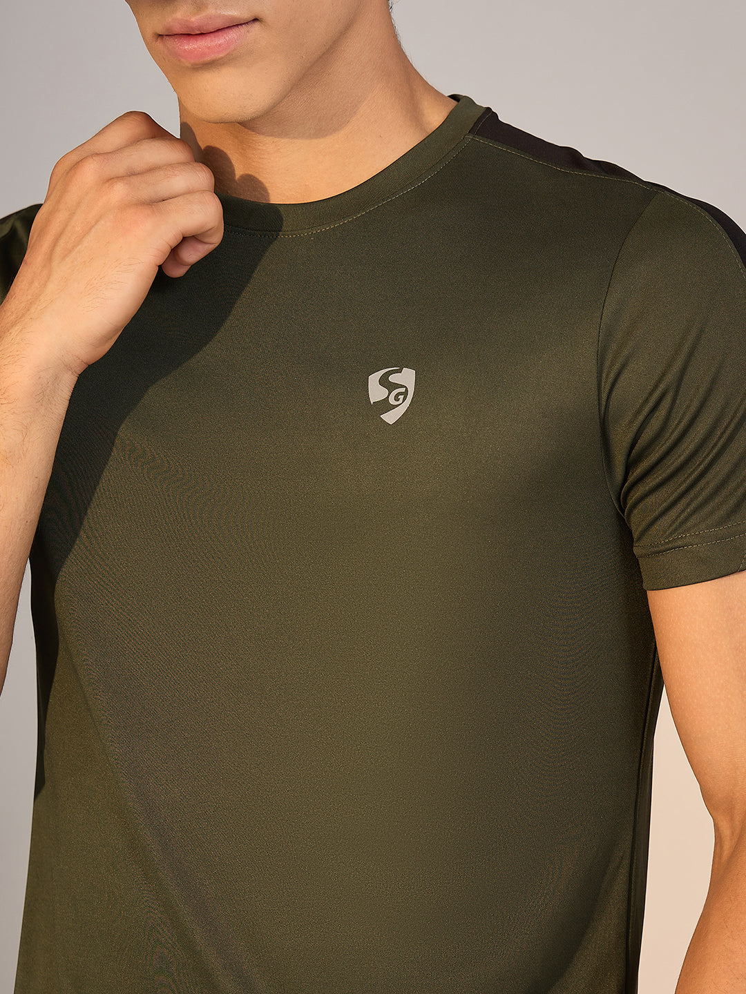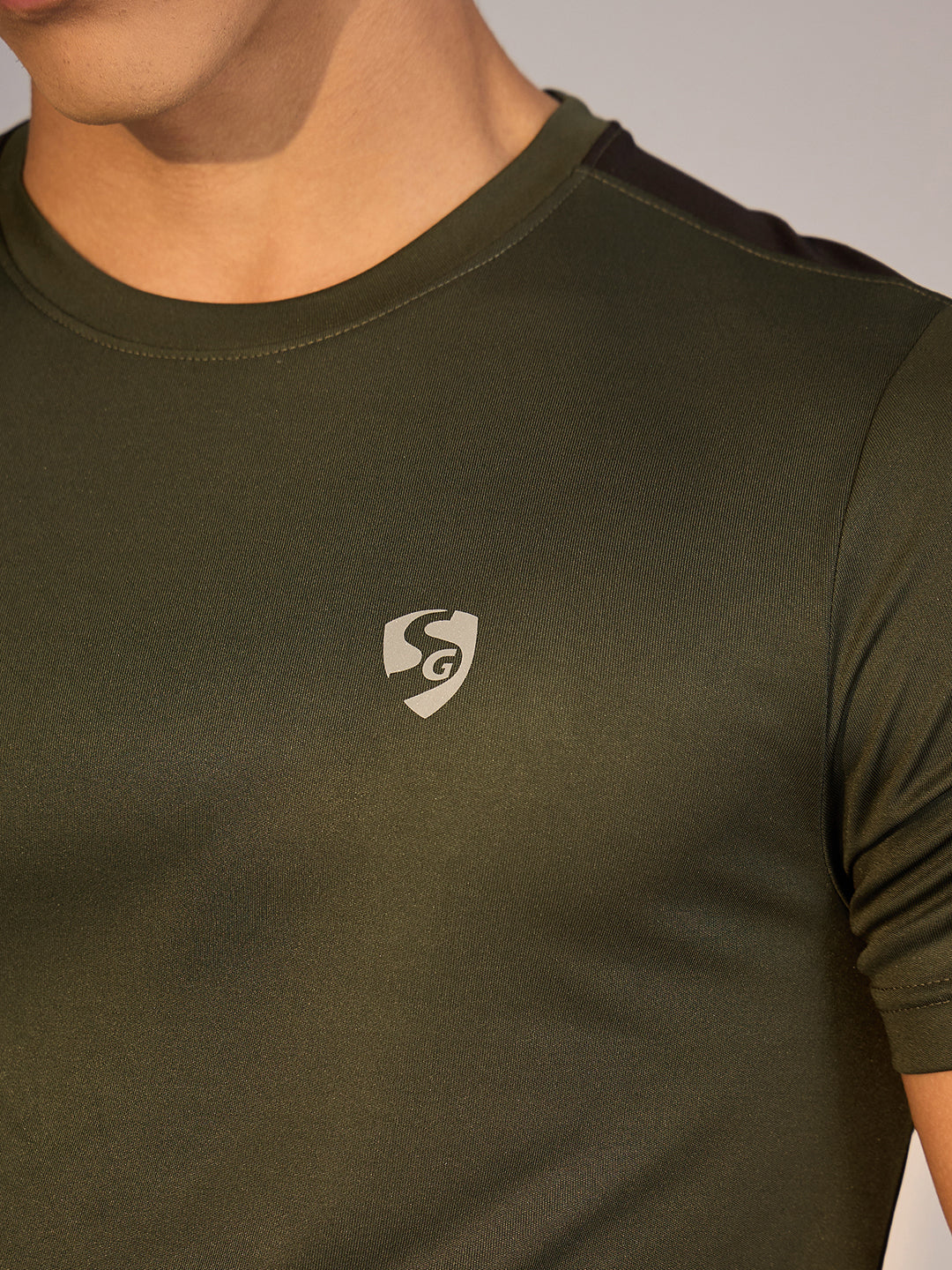 This Olive T-shirt in breathable Poly Interlock combines fashion and function with its regular fit, cut and sew design, with trapzium cut at back making it ideal for a true sportsman.
