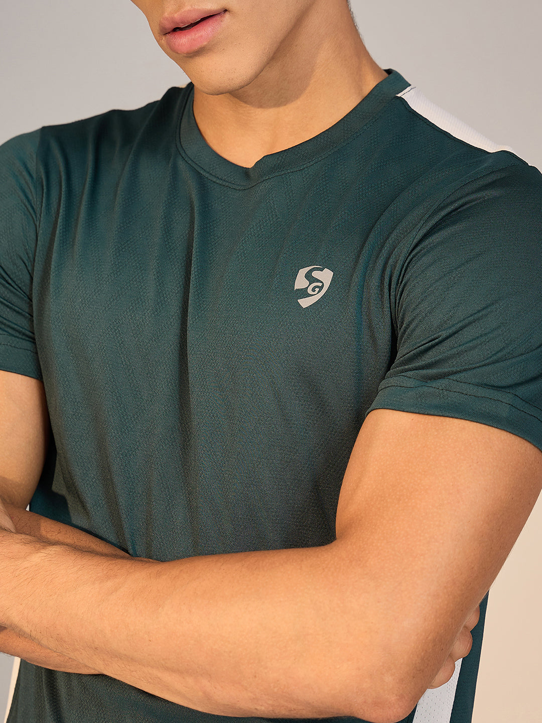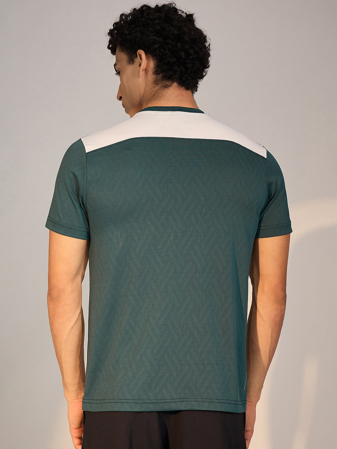 Built for movement and style, this Teal Green T-shirt in premium Jacquard features regular fit, cut and sew design, making it ideal for daily wear.