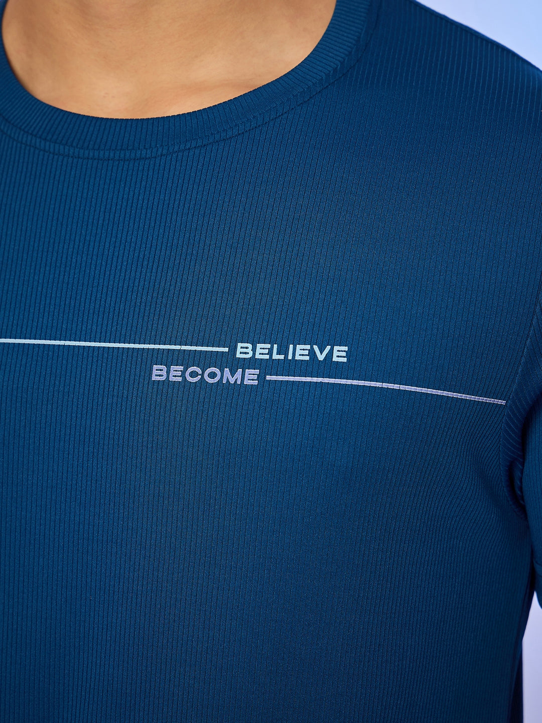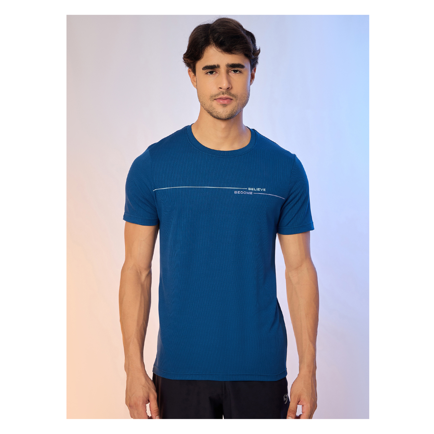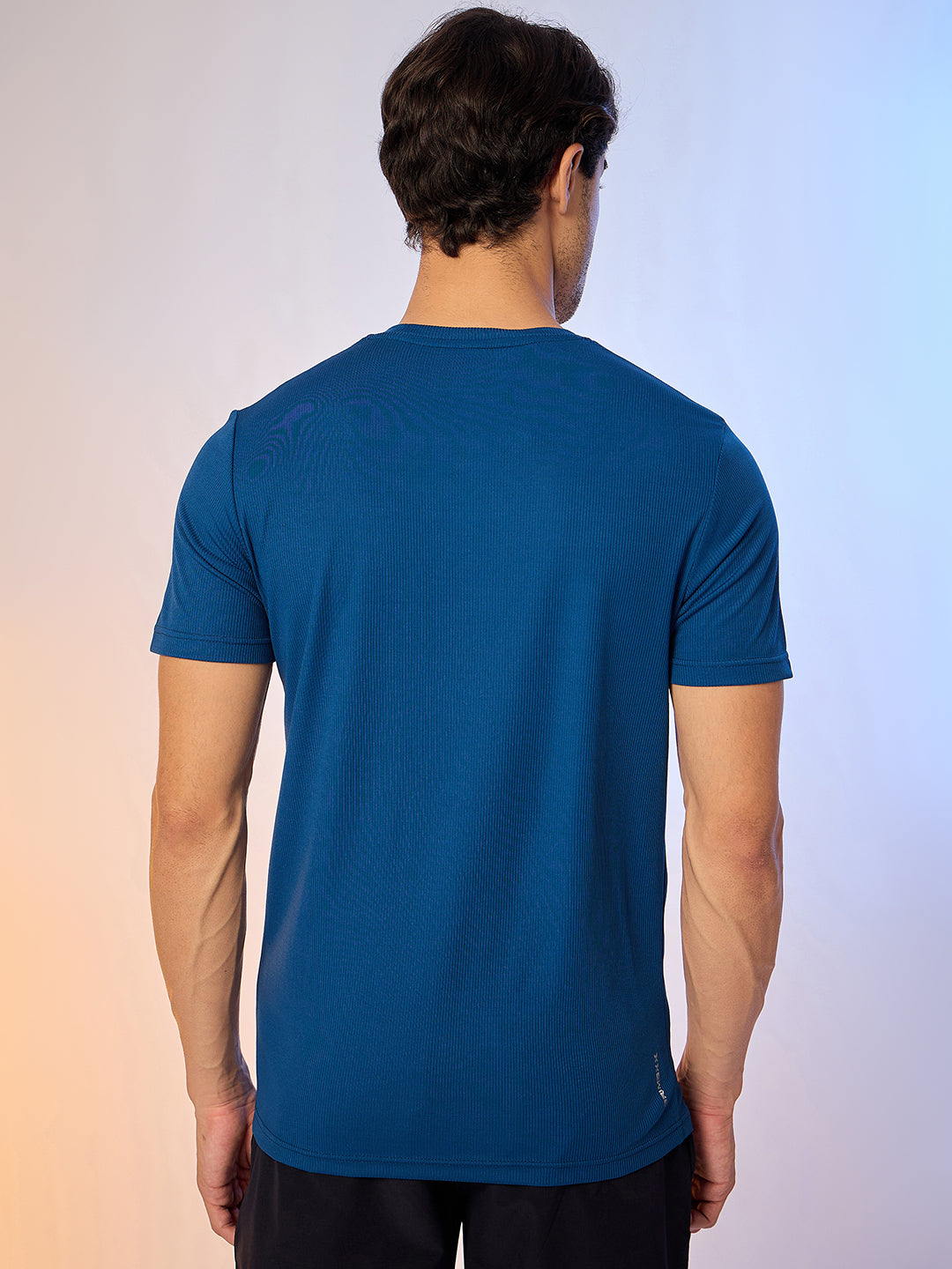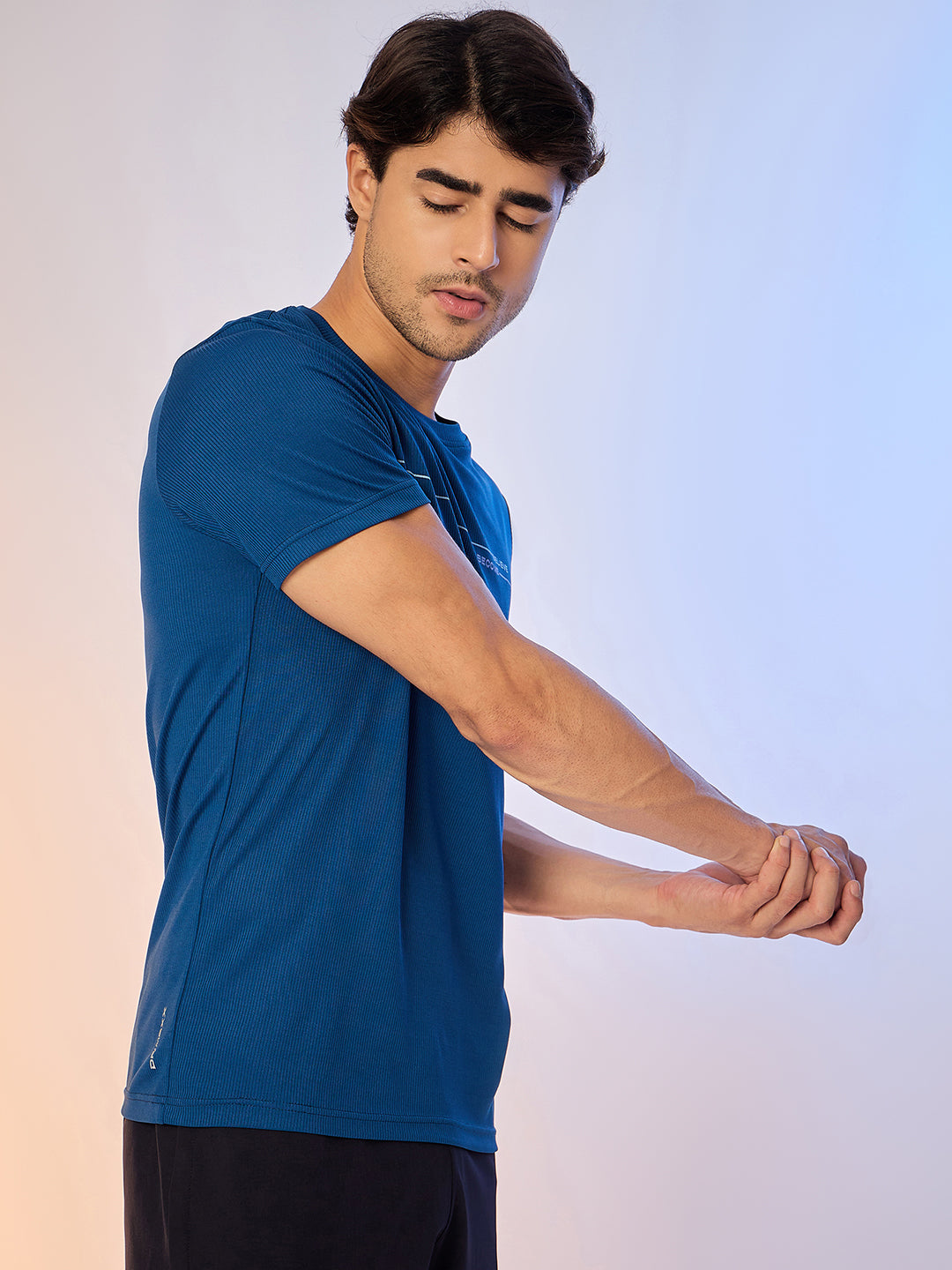 Step into comfort and functionality with this Navy T-shirt. Designed using premium Vertical Knit, it highlights minimal print in front, regular fit for a refined touch.